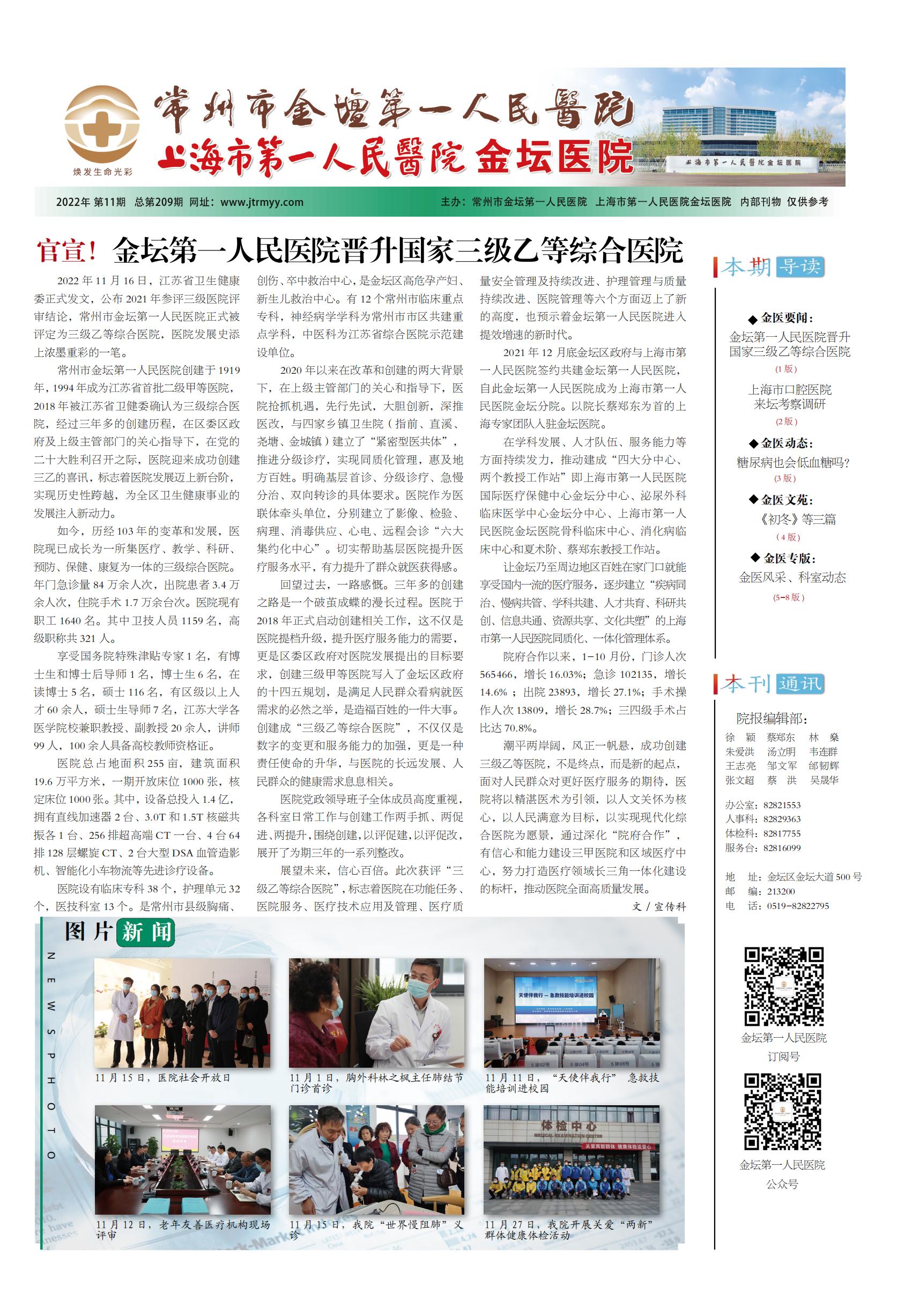 官宣!金坛第一人民医院晋升国家三级乙等综合医院